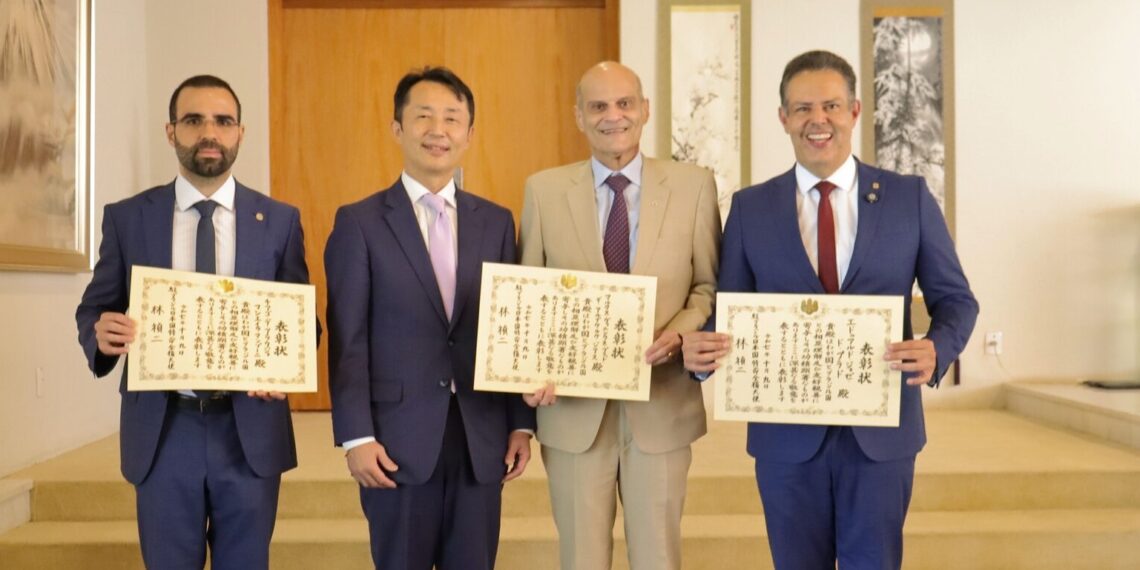 O secretário recebeu o diploma de Honra ao Mérito do embaixador do Japão e agradeceu, emocionado, pela honraria. “Esta foi a missão que recebi do governador Ibaneis Rocha quando ele criou, há 3 anos, a secretaria: fortalecer os laços entre Brasília e os países do mundo. E hoje, ter esse trabalho reconhecido pelos embaixadores mostra que estamos no caminho certo”, afirmou Paco Britto. Também receberam a honraria o deputado distrital Thiago Manzoni, e o deputado estadual goiano, Delegado Eduardo Prado.