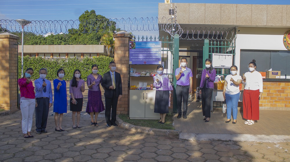 A embaixadora, junto com os oficiais da embaixada e seus cônjuges, assim como os funcionários tailandeses, instalaram uma prateleira para bens de consumo essenciais na frente das sede diplomática. O Objetivo, segundo Manitkul , “é compartilhar e distribuir os referidos itens de socorro aos menos favorecidos e àqueles que sofrem com a epidemia, especialmente em Brasília”. “Este é o caminho para dividir para outros”, relatou.