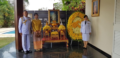 Diplomatas e servidores da embaixada da Tailândia, em Brasília, prestaram tributo à Sua Majestade , conhecido como Grande Borommanatbophit, nesta terça-feira (13). O rei Bhumibol Adulyadej, que esteve no comando do país por sete décadas, faleceu e 2016. Ele é pai do atual dirigente da Tailândia, rei Maha Vajiralongkorn.