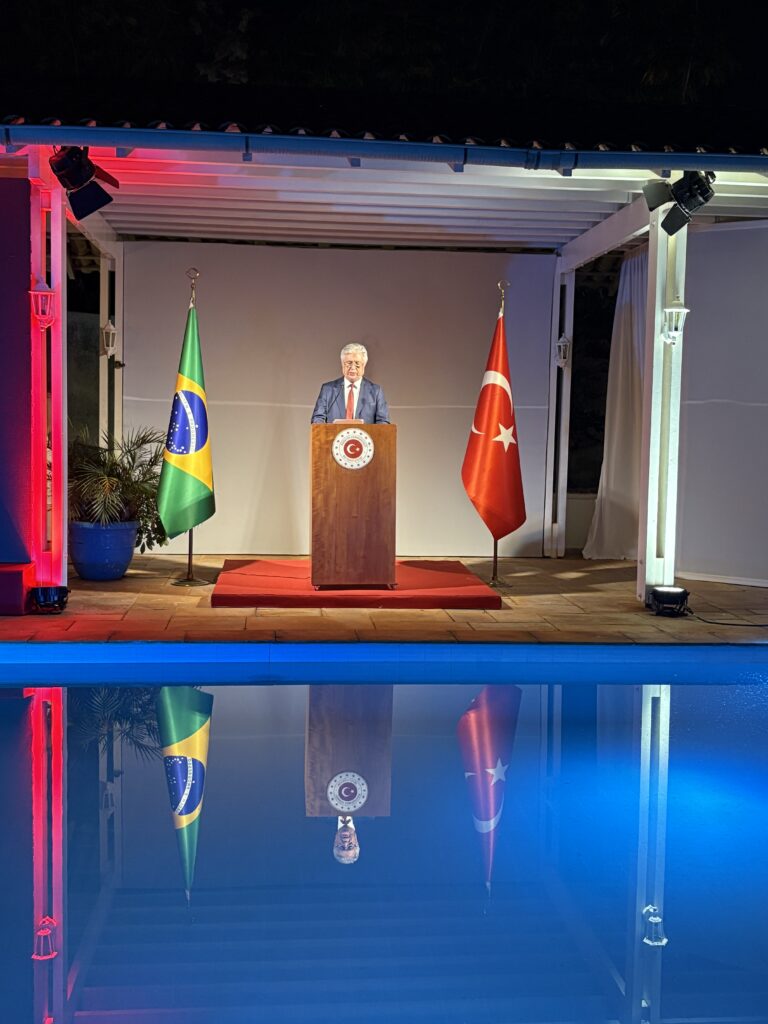 Em sua fala, o embaixador Halil Ibrahim Akça ressaltou ainda o crescimento do comércio bilateral, que já alcança cerca de US$ 6 bilhões, com meta de atingir US$ 10 bilhões nos próximos anos. Destacou também a cooperação em setores como defesa, educação, turismo e investimentos estrangeiros. “Temos desenvolvido parcerias estratégicas na indústria aeroespacial e nas forças armadas, além de intensificar intercâmbios acadêmicos e culturais”, acrescentou.