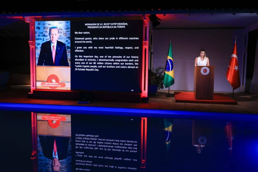 A Embaixada da Turquia no Brasil, em Brasília, sediou, no dia 29, a festa do 102º aniversário da Proclamação da República da Turquia com uma recepção que reuniu autoridades diplomáticas, representantes do governo brasileiro e membros da comunidade turca. Em seu discurso, o embaixador Halil Ibrahim Akça destacou a amizade histórica e os laços crescentes entre os dois países. “Em 29 de outubro de 1923, a República da Turquia foi fundada sobre princípios sólidos como democracia e direitos humanos. Hoje, celebramos também a ótima relação com o Brasil, nosso principal parceiro estratégico na América do Sul”, declarou.
