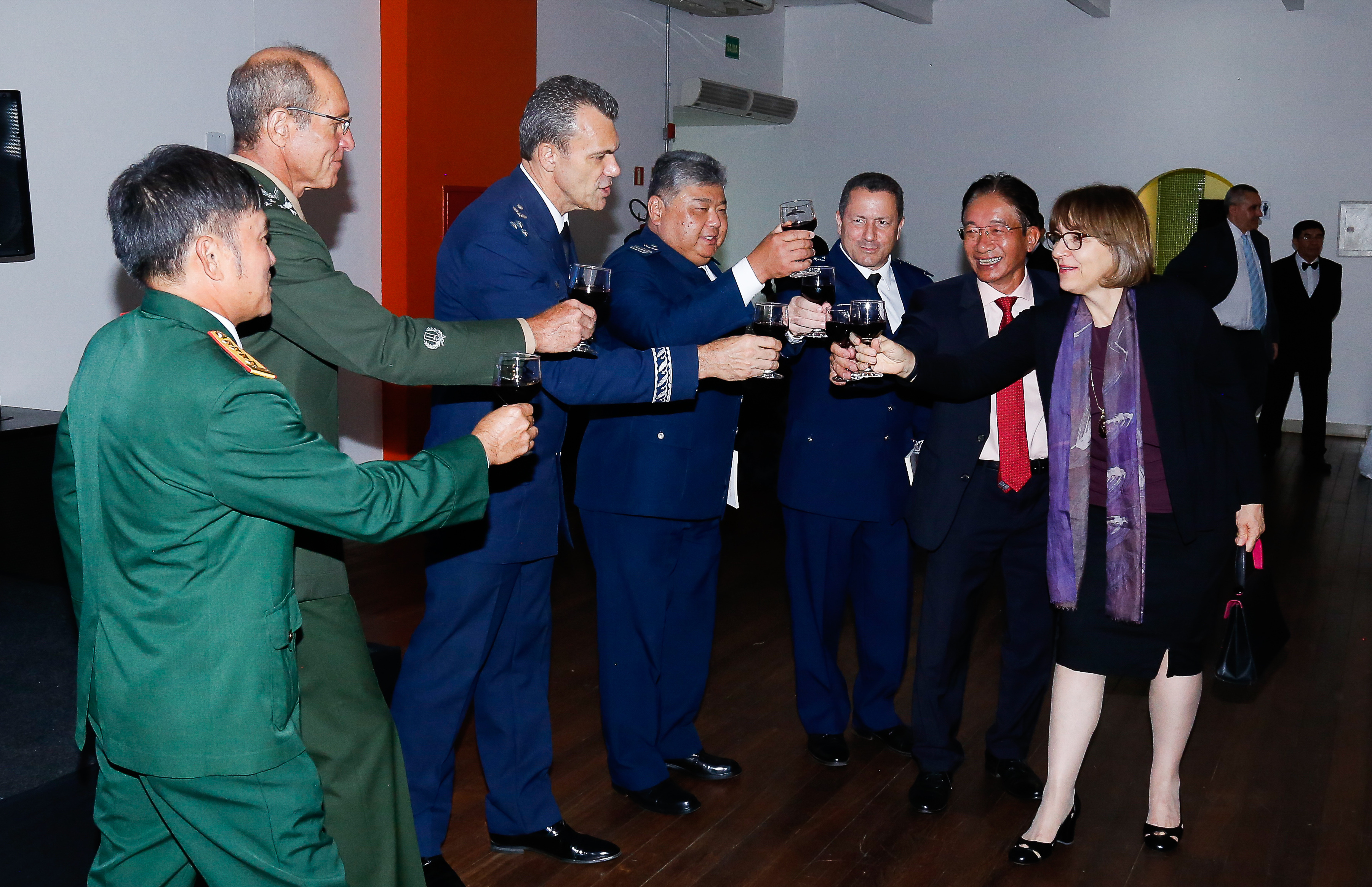 Participaram da celebração, o primeiro-ministro Carlos Minelli, vice-secretário-geral dos assuntos estratégicos da defesa, embaixadora Maria Isabel, ministra dos negócios estrangeiros e mais de 200 convidados como oficiais finalistas representantes da Defesa, Ministério dos Negócios Estrangeiros, Ministério da Agricultura, Ministério da Economia, Ministério da Economia, Ministério da Economia , Senado e Câmara Federal