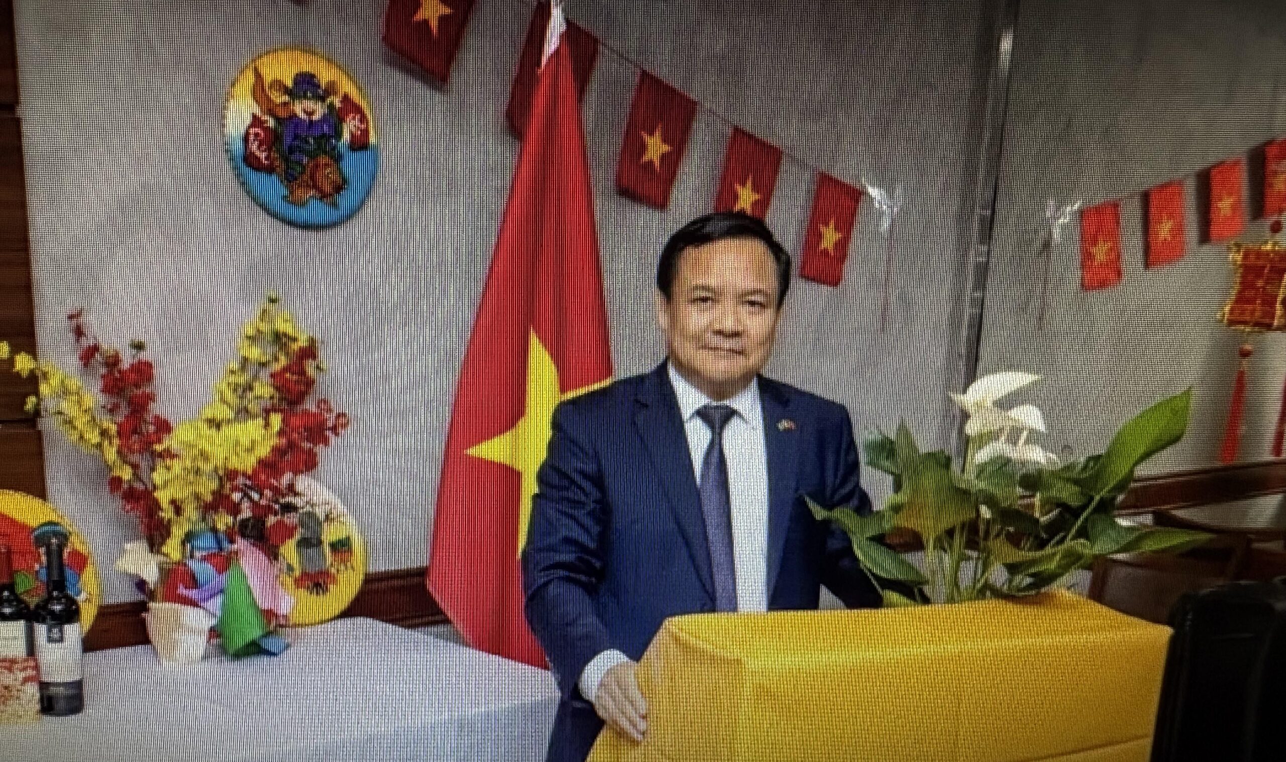 Em seu discurso, o embaixador Bui Van Nghi estendeu seus cordiais saudações e votos de um Ano Novo repleto de saúde, prosperidade e felicidade à comunidade vietnamita e suas famílias que vivem, estudam e trabalham no Brasil e nos países onde atua. Ele também apresentou um breve panorama da situação no Vietnã, destacando as conquistas notáveis do país em 2025.